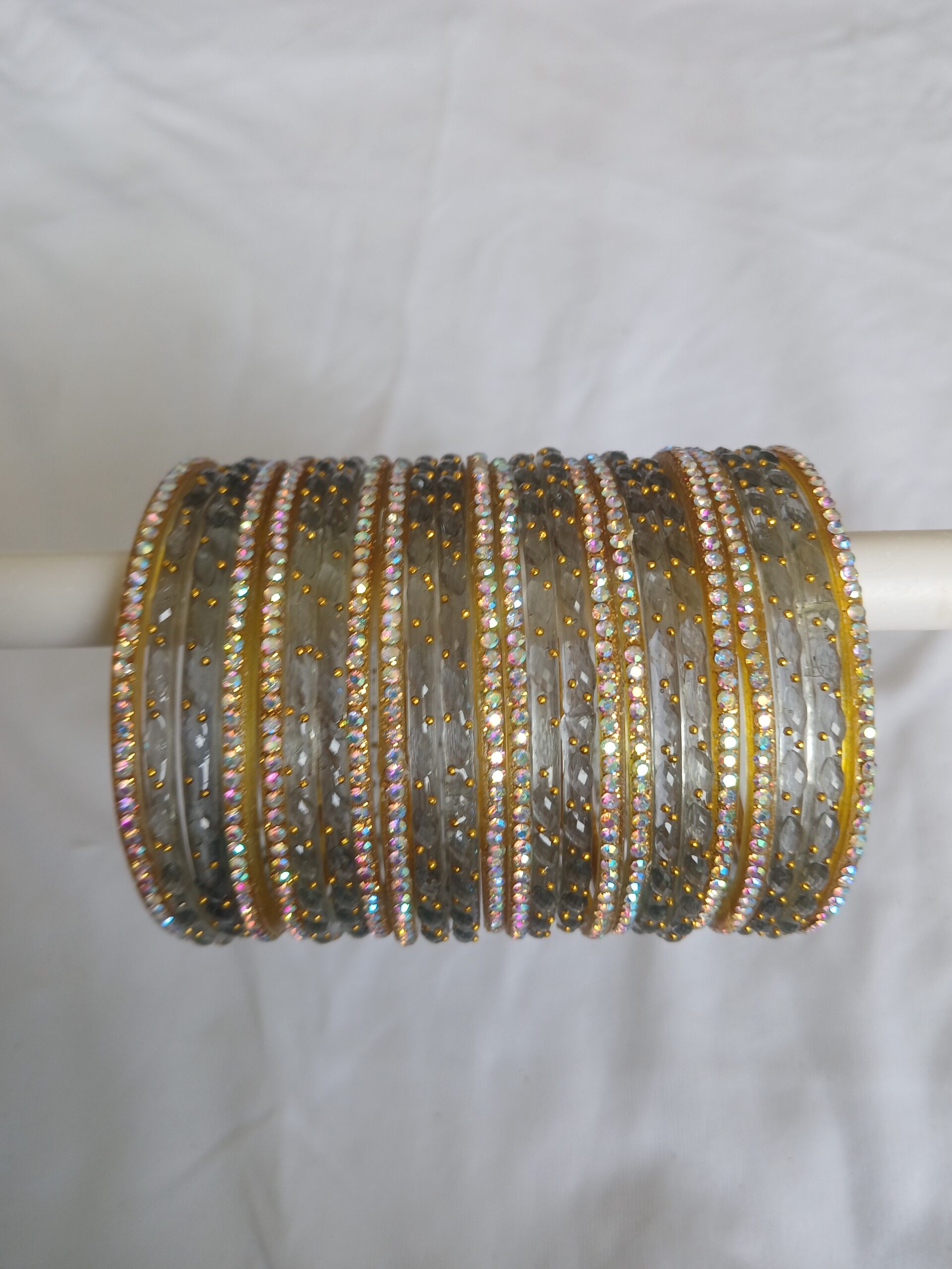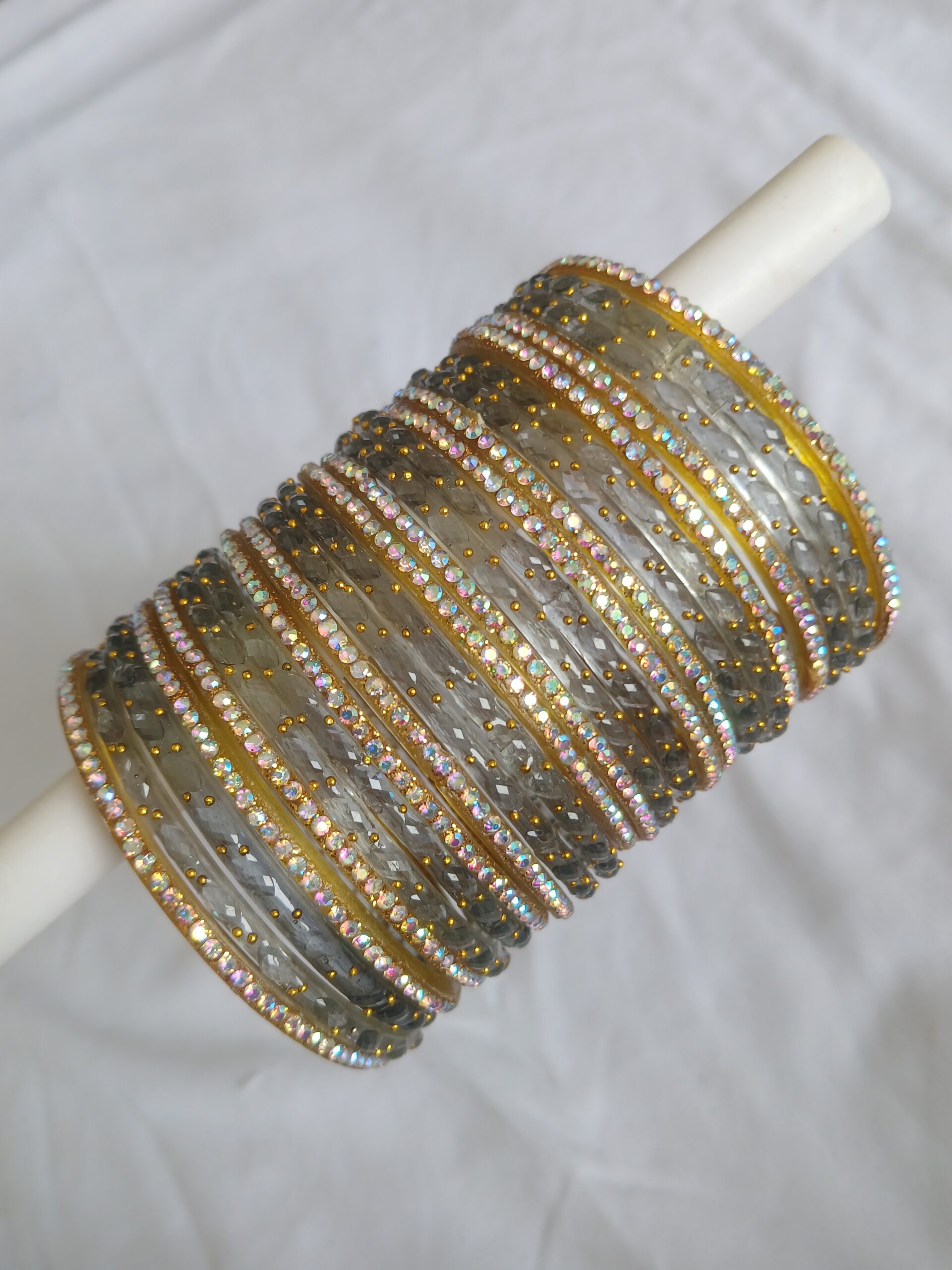 Add a touch of elegance to your ethnic look with our Raindrop Glass Bangles, handcrafted in the heart of Firozabad.Material: High-quality glass